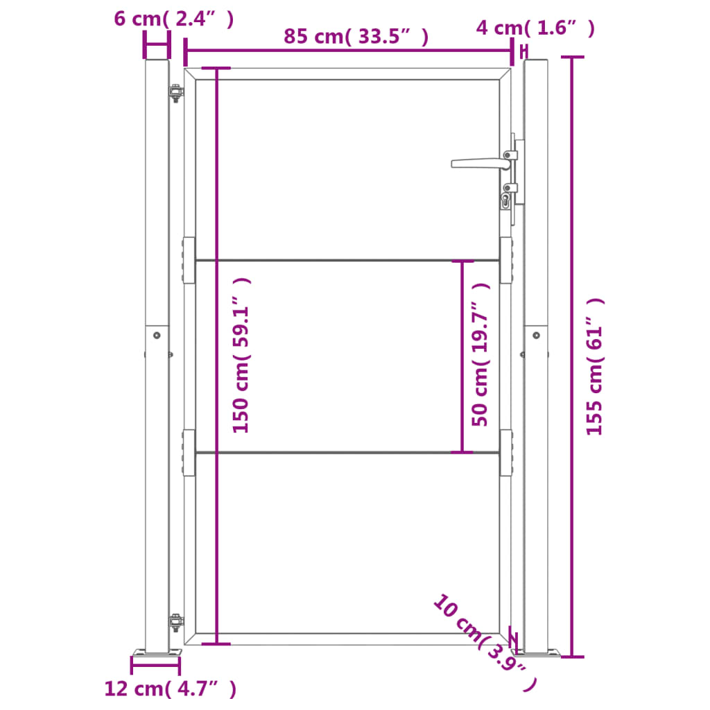 - Enkel å montere: Inngangsporten leveres komplett med to stolper med flensplater og monteringstilbehør for enkel montering.