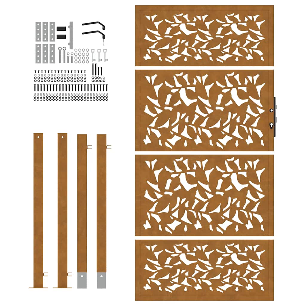 Hageport 105x180 cm oksidert stål bladdesign