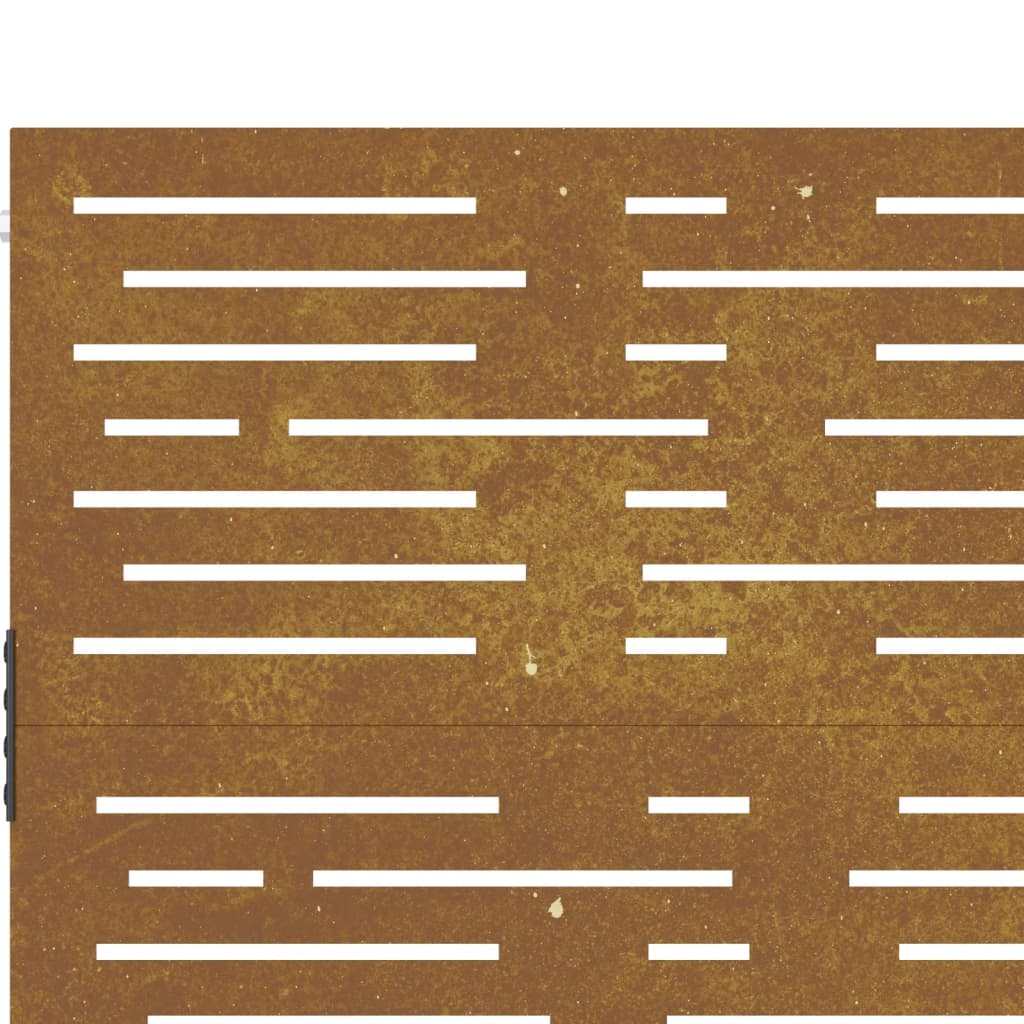 - Holdbart materiale: Denne metallporten er laget av cortenstål. Cortenstål er korrosivt i sin natur. Det utvikler et rustent beskyttende lag mot korrosjon når den først utsettes for atmosfæriske forhold. Dermed trenger du ikke å male det. Dette kan hjelpe deg med å spare på vedlikeholds- og reparasjonskostnader. Den karakteristiske brunfargen på cortenstålet vil garantert være et blikkfang. Endelig er forhåndsrustet stål eksepsjonelt holdbart og vil tåle tidens tann.