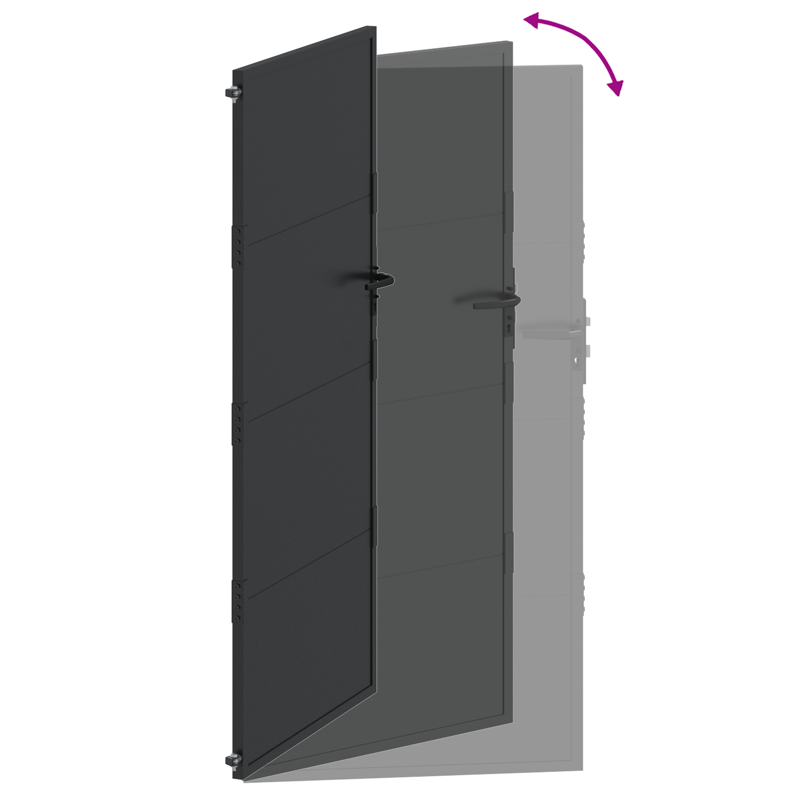 - Pulverlakkert Stål: Porten er laget av stål med en pulverlakkert finish, så den tåler vær og vind, samtidig som den ser smooth og moderne ut. Den er laget for å vare og beholder sitt fine utseende uansett vær.