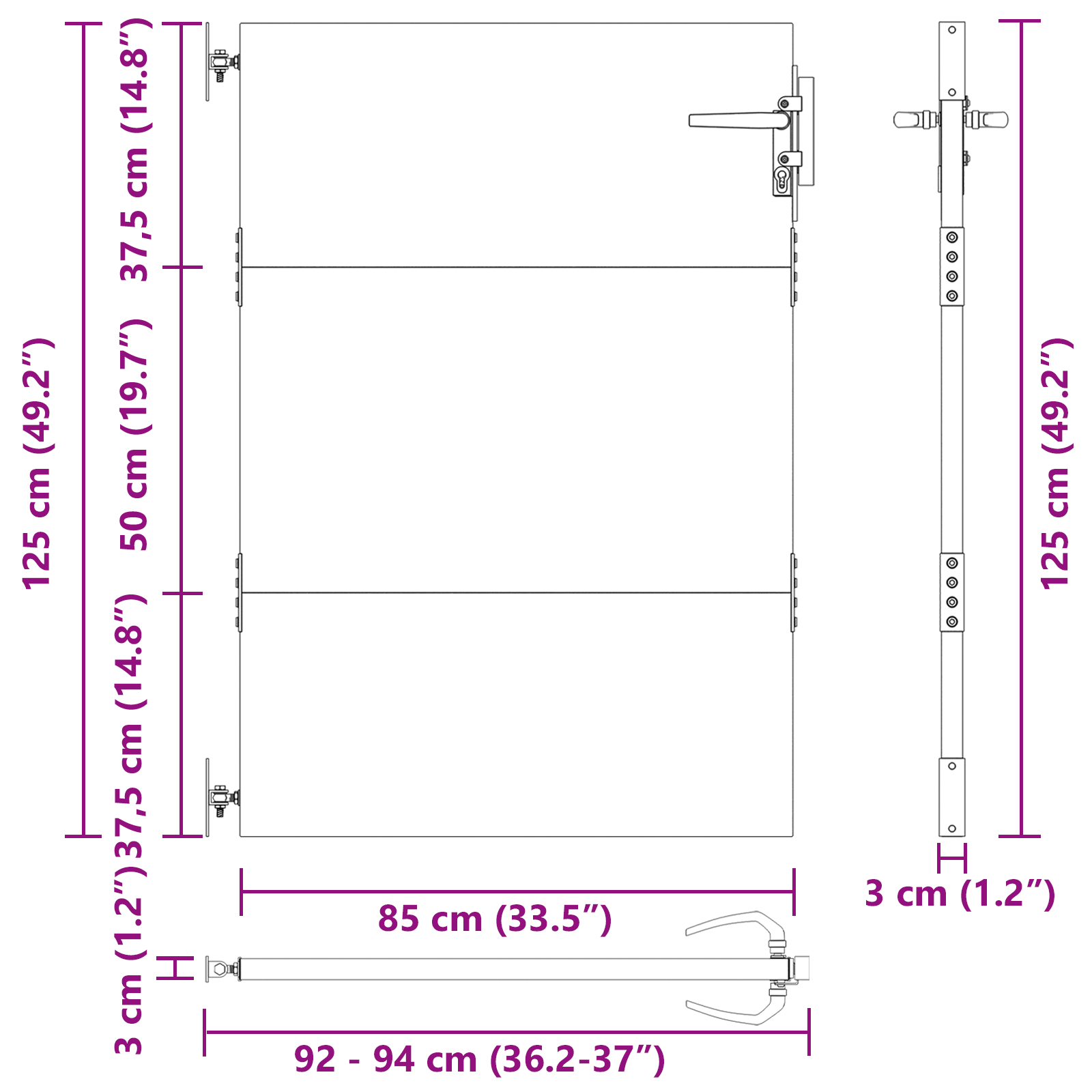 Hageport med lås Svart 105 x 125 cm Pulverlakkert stål