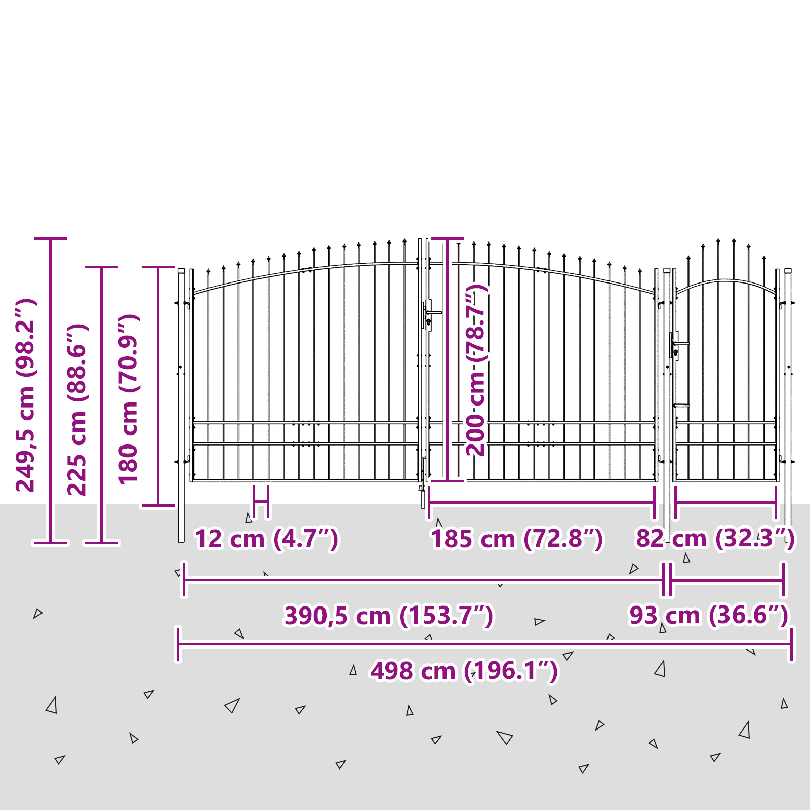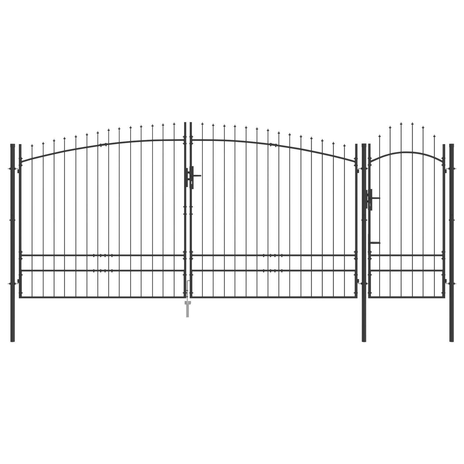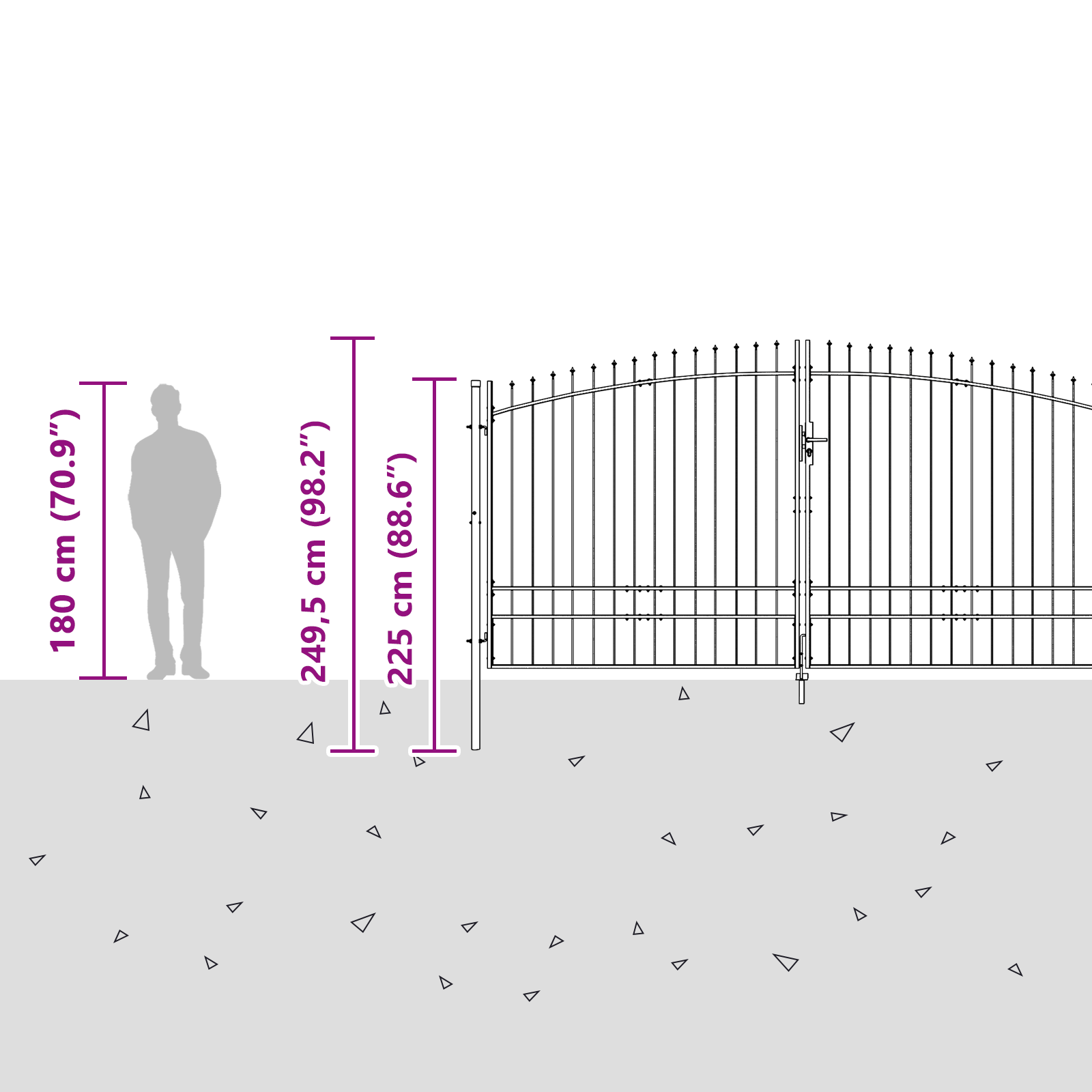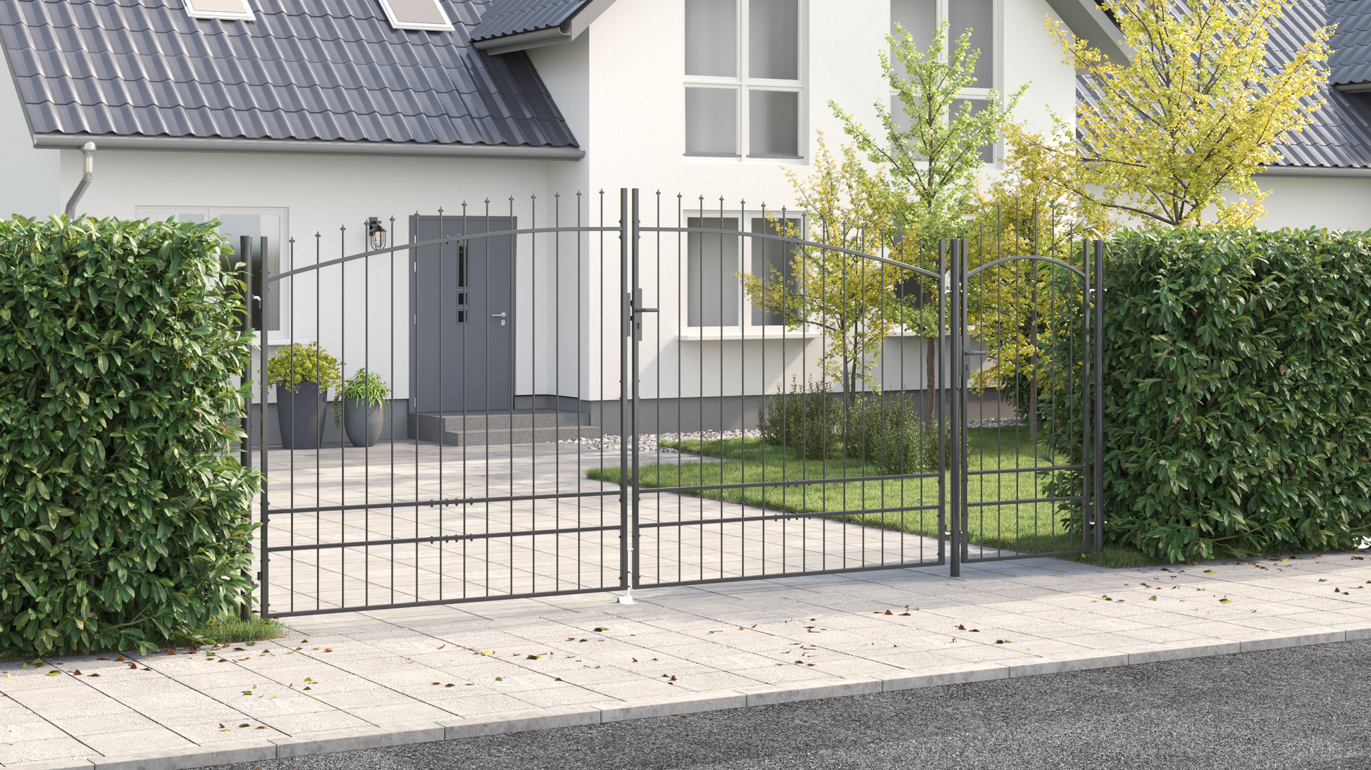 Denne hageporten slår sammen funksjonalitet og stil. Den er laget for utendørs bruk, bygget av pulverlakkert stål med en klassisk spydtopp som gir både sikkerhet og enkel tilgang.