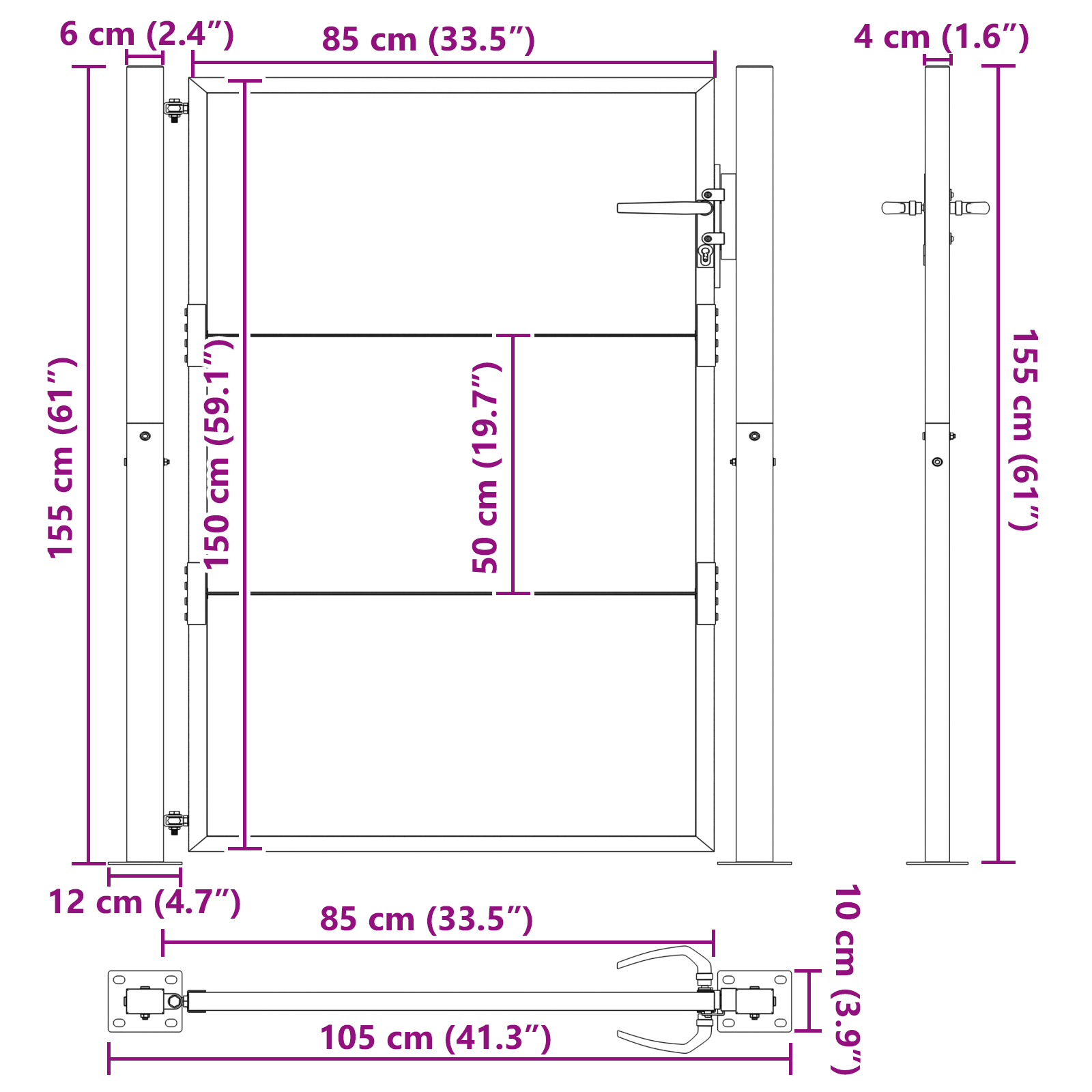 Denne hageporten er en stilig og praktisk måte å sikre uteområdet ditt på. Den er perfekt for hager og terrasser, og det moderne utseendet passer inn alle slags landskap, samtidig som den holder uønskede besøkende unna. Med sin glatte overflate og elegante linjer gir den et classy preg uten å overvelde utseendet ditt. Laget for utendørs bruk, passer denne porten rett inn og kombinerer skjønnhet med sikkerhet for en flott inngang.