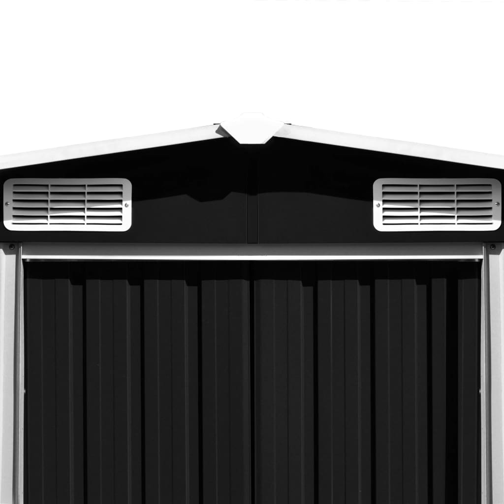 Dette skjulet har ventiler som sikrer god ventilasjon. Doble skyvedører i fronten gjør det enkelt å komme inn og ut. Takket være konstruksjonen i galvanisert stål, er oppbevaringsskuret holdbart og sterkt, og vil ikke korrodere eller bli påvirket av ugunstige værforhold.