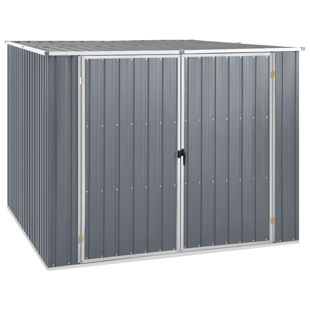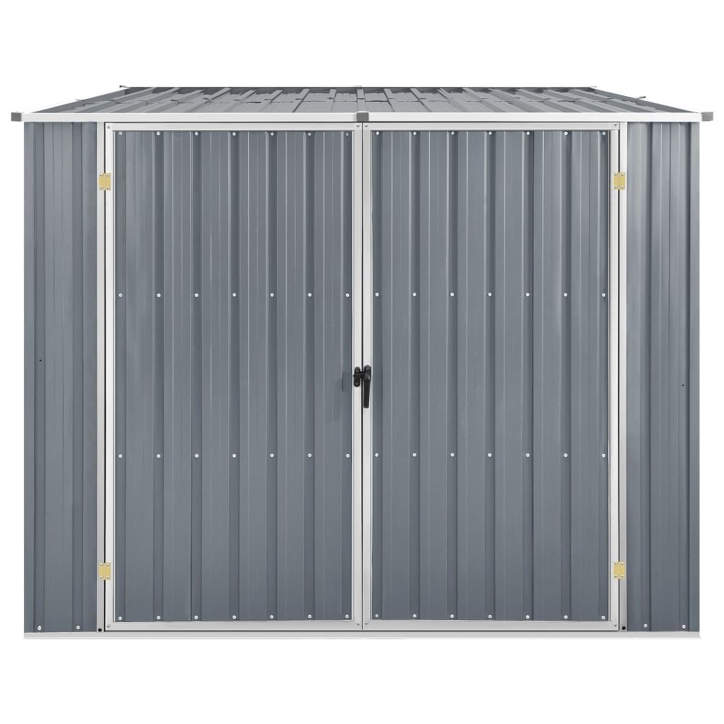 Dette utendørs oppbevaringsskuret i galvanisert stål krever lite vedlikehold og er veldig slitesterkt. De doble dørene foran gjør det enkelt å gå inn og ut. I tillegg dreneres regnvannet automatisk fra taket, takket være det skrånende designet.