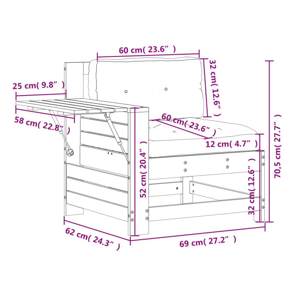 - Praktisk sidebord: Disse utemøblene har et sammenleggbart sidebord med en gassfjær på armlenene, noe som gir et praktisk sted å holde det du trenger innen rekkevidde.