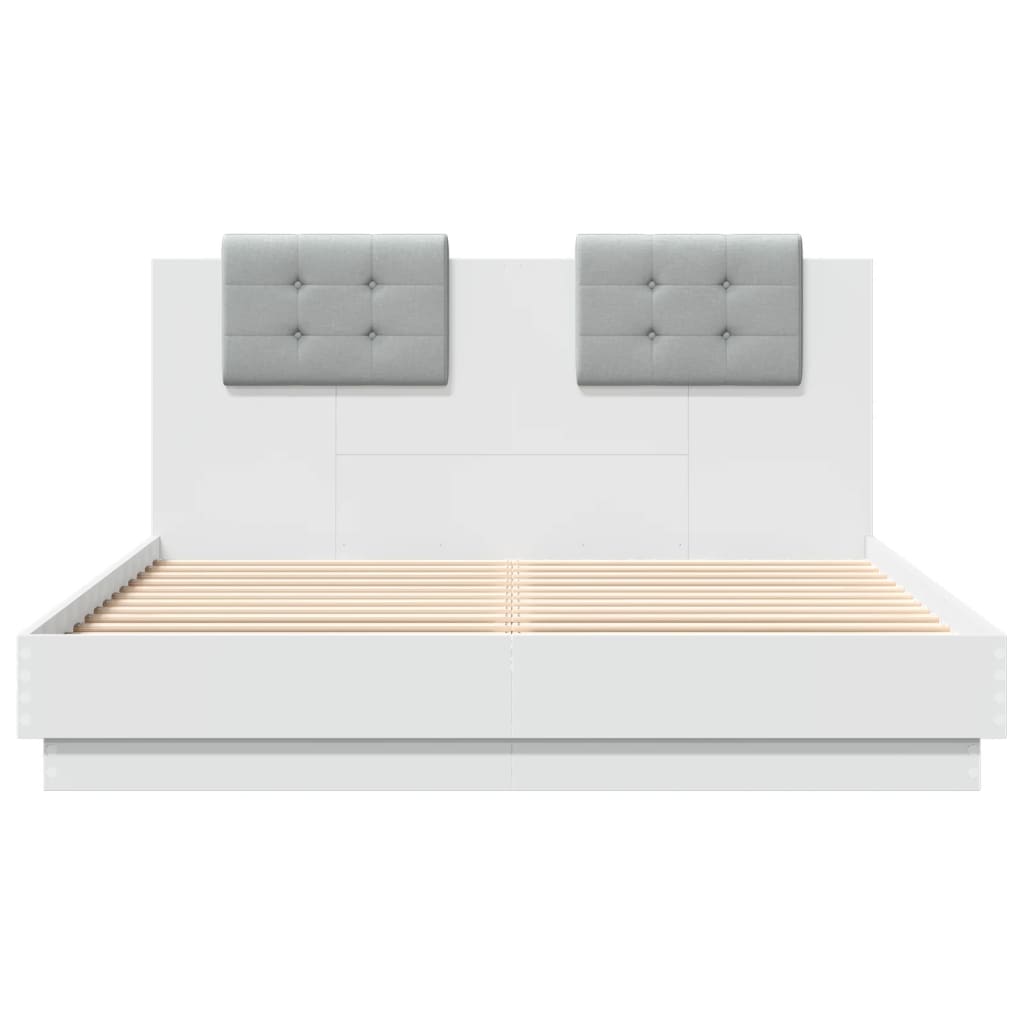 Sengeramme med hodegavl og LED-lys hvit 120x200 cm